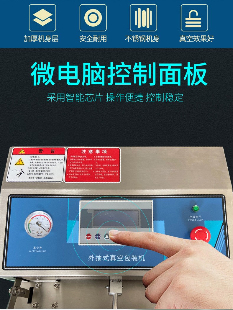 外抽真空包裝機主要通過外部的真空泵來抽取包裝容器(通常是真空袋)內(nèi)的空