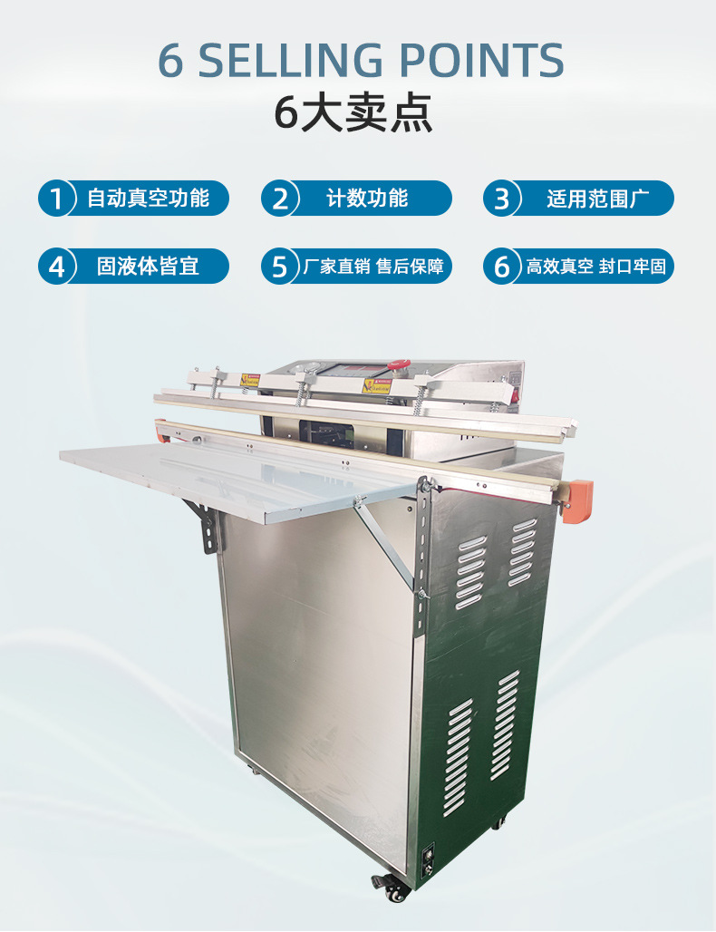 - 空間占用小:外抽式真空包裝機通常體積較小,不需要大型的真空室,占地面積小,適合空間有限的生產車間或實驗室使用。其緊湊的設計也便于移動和安置,可根據生產需求靈活調整設備的擺放位置。