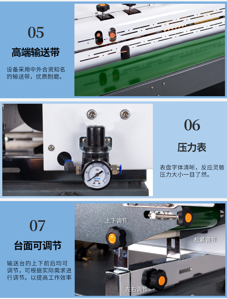 其工作流程順暢且緊湊,通過自動化的傳送系統,將待封口的物品持續不斷地輸送至真空封口區域。在這一區域,機器迅速抽取包裝袋內的空氣,達到設定的真空度后,緊接著進行封口操作,整個過程一氣呵成。