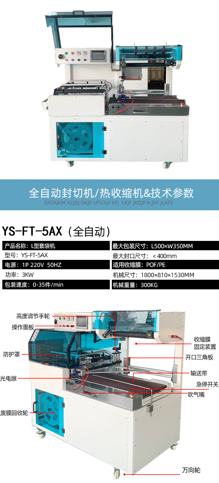 - 可以適應多種包裝薄膜材質,如 POF、PVC、PP 等熱收縮薄膜,并且能夠對不同形狀、大小和重量的產品進行包裝。無論是小型的電子配件、食品,還是大型的玩具、五金工具等,都可以使用全自動封切機進行高效包裝。