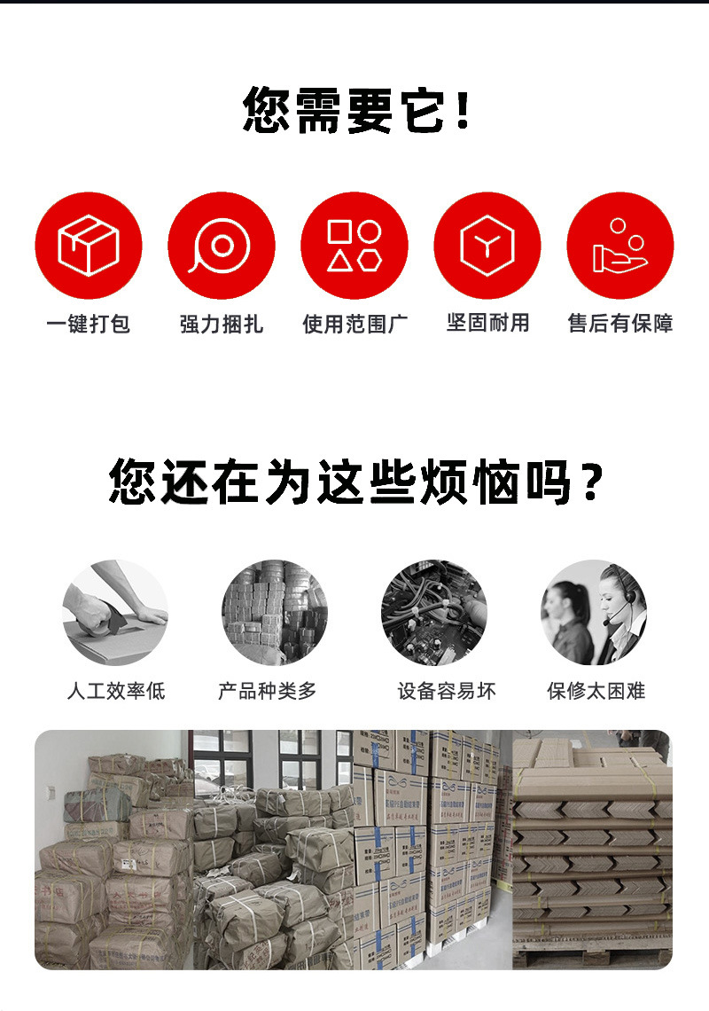 - 節省人力成本:全自動打包機幾乎可以獨立完成打包工作,只需要少量的人工進行物品的放置和機器的監控。這大大減少了人工打包所需的人力投入,降低了人力成本,同時也減輕了工人的勞動強度。