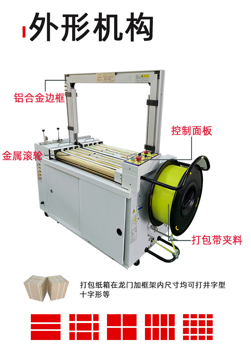 - 打包質量穩定:由于采用了精準的機械和電氣控制系統,打包帶的拉緊程度、熔接質量等都能得到很好的控制。打包帶能夠緊密地貼合在物品表面,熔接牢固,能夠有效防止物品在運輸過程中散開。這樣可以保證包裝的質量,減少因包裝問題導致的物品損壞。