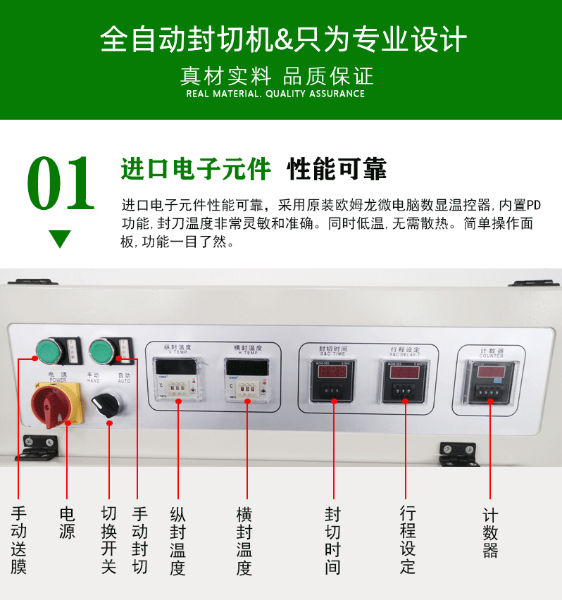 - 加熱裝置:為邊封刀提供熱量。一般采用電加熱方式,并且有精確的溫度控制模塊。通過調節溫度控制模塊,可以使邊封刀達到合適的封口溫度,例如,對于一些常用的塑料包裝薄膜,溫度可能設置在 120 - 180℃之間,具體溫度要根據薄膜的材質和厚度來確定。