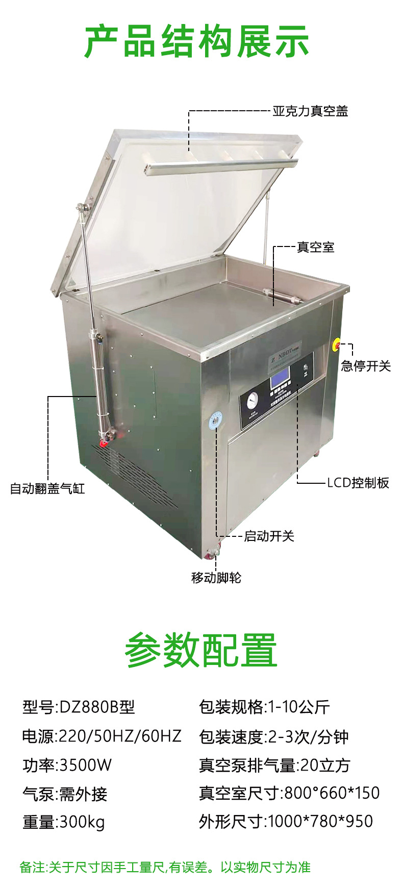 - 工作腔一般采用不銹鋼材質,表面光滑,便于清潔。而且,工作腔周圍會有密封良好的橡膠墊圈,確保在抽真空過程中不會漏氣,維持工作腔內的負壓環境。
