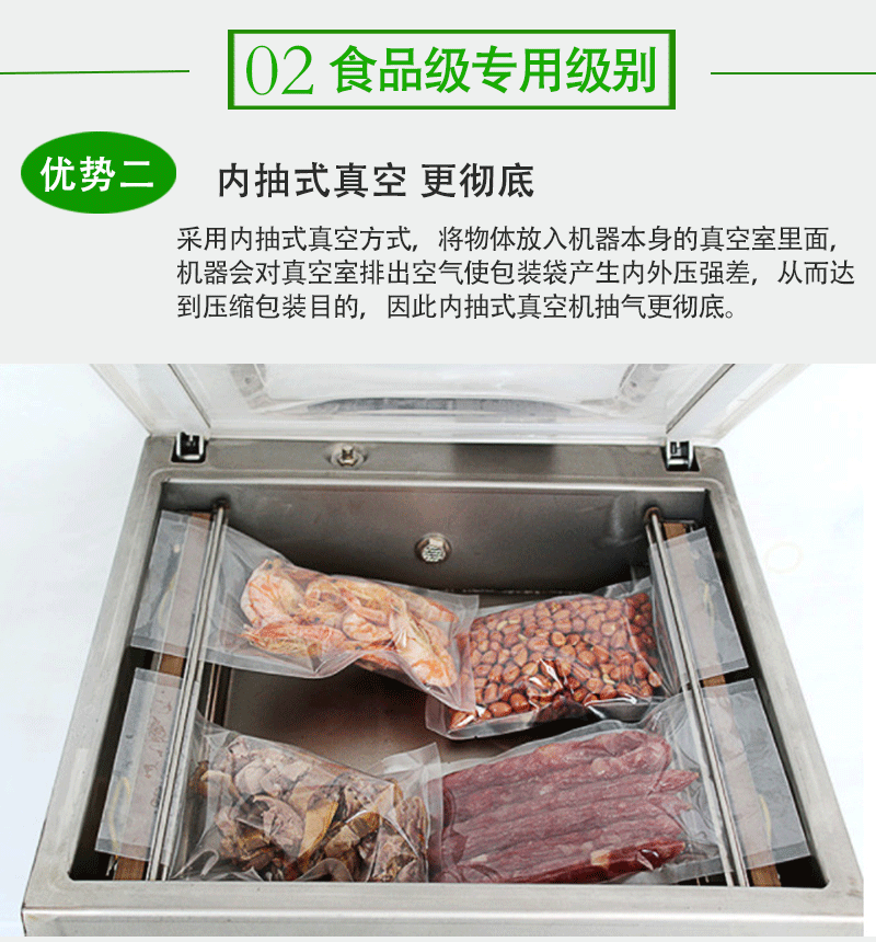 - 例如,在小型食品加工廠,使用單室內抽真空包裝機可以快速地將食品進行真空包裝,延長食品的保質期,滿足一定的生產規模需求。