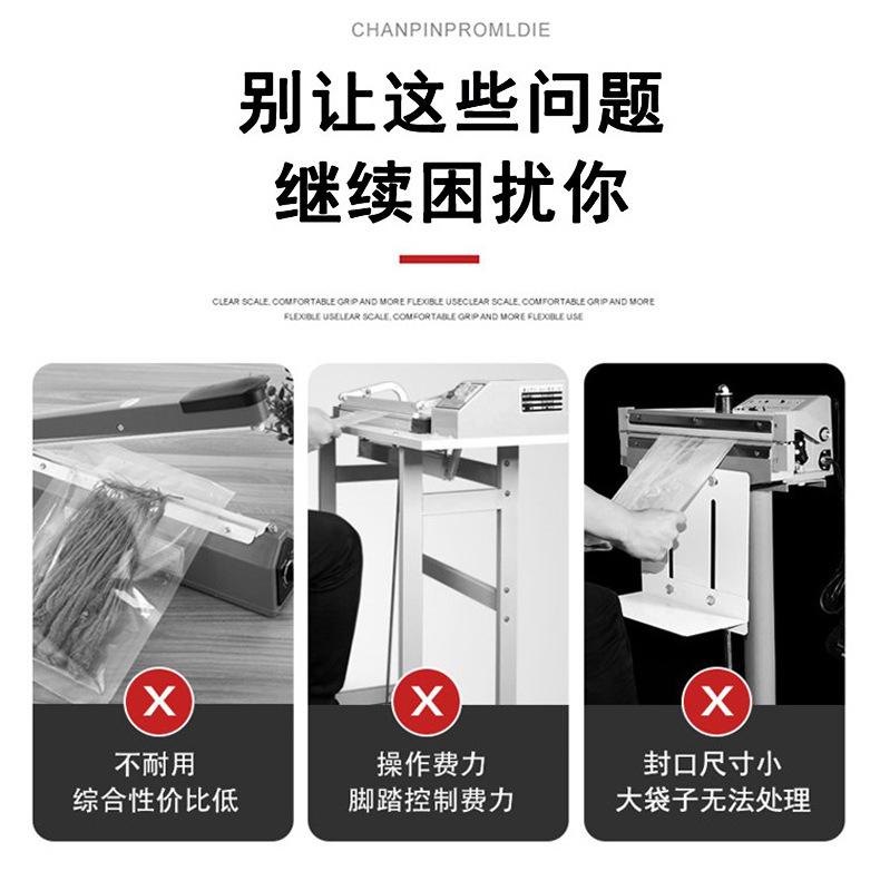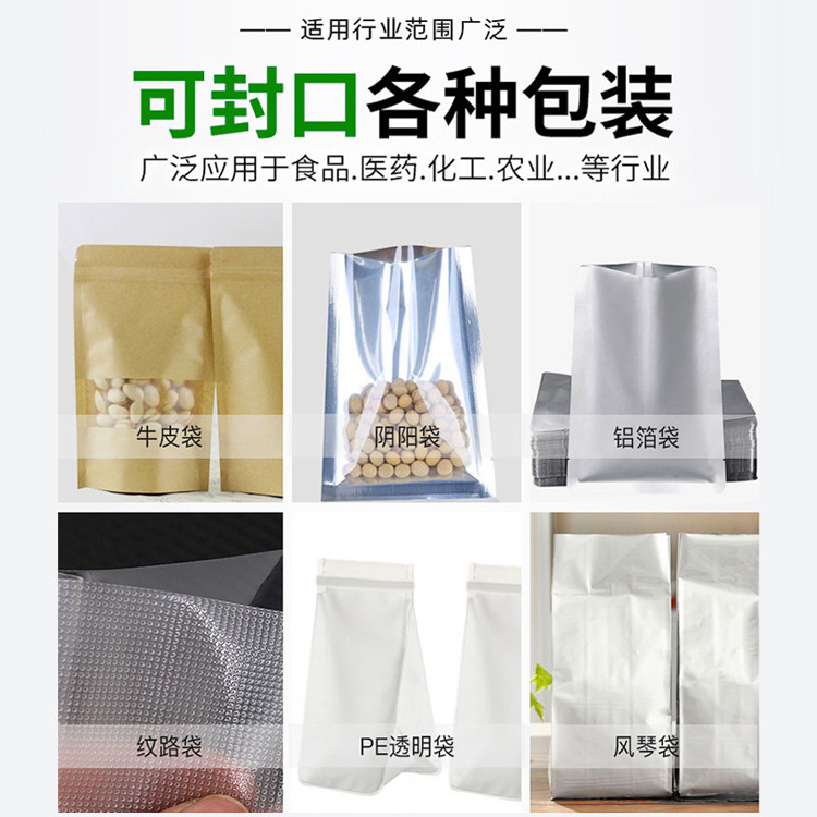 - 特點(diǎn):操作簡(jiǎn)單,價(jià)格低廉。完全依靠人工將包裝袋放置在封口條上并進(jìn)行壓合操作。適合家庭或小型店鋪使用,用于封口少量的包裝袋,如家庭中封裝自制的零食、小物品,或者小商店封裝一些小飾品等。