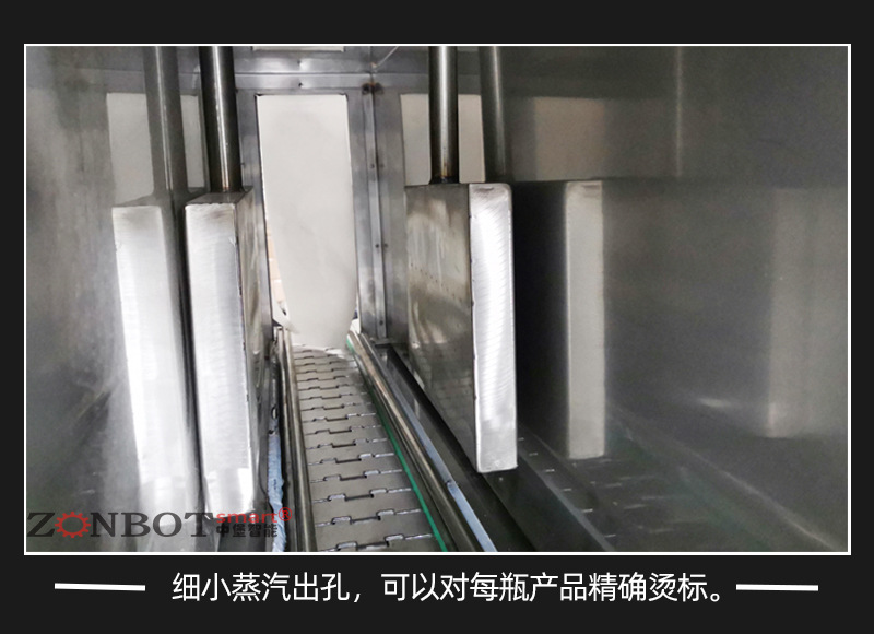 • 有輸送帶,它用于將產品輸送到蒸汽處理區域。輸送帶的速度通常是可以調節的,這樣能夠根據產品的大小、包裝材料的特性以及生產效率的要求來控制產品在蒸汽中的停留時間。例如,對于較大、較復雜的產品,可能需要適當降低輸送帶速度,延長蒸汽處理時間,以保證包裝收縮效果良好。