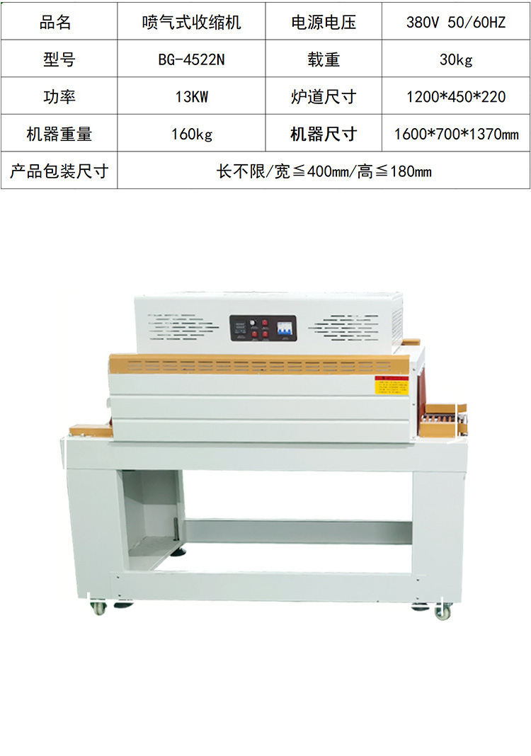 - 收縮效果好:爐道加長加大,內部受熱均勻,可有效避免局部過熱或收縮不充分的問題,使包裝更緊密、美觀.
