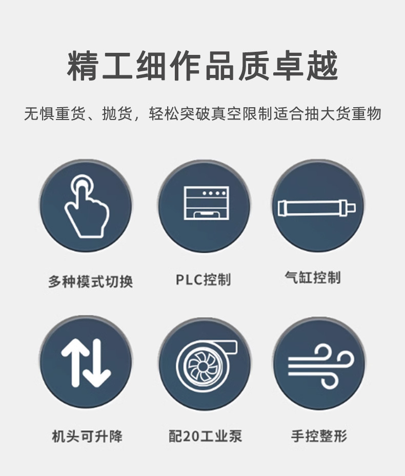 - 立式設(shè)計(jì):真空室呈立式,袋口為立封形式,這種設(shè)計(jì)使得機(jī)器可以連同產(chǎn)品外包裝(如桶、盒)一起直接擱置于真空室內(nèi),完成內(nèi)袋的真空封口,便于重物擱置1。