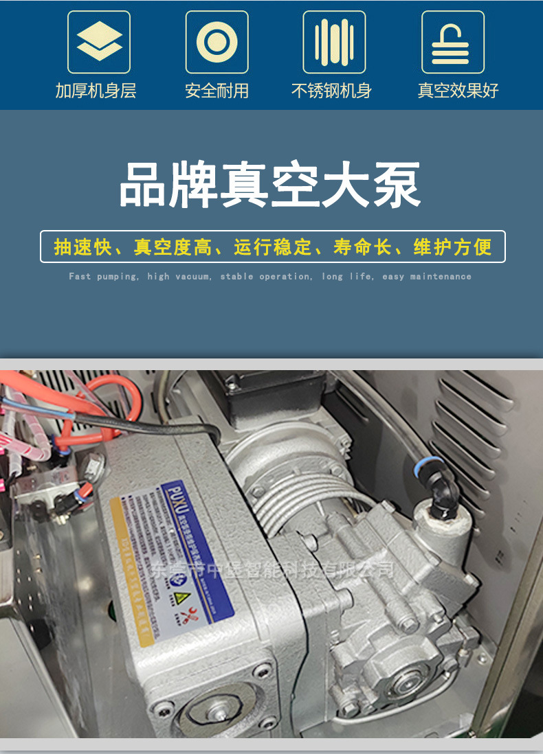 - 靈活的抽氣管配置:配備可靈活調整位置的抽氣管,操作人員能夠依照包裝物品的具體形態、位置,精準挪動抽氣管,保障抽氣徹底,達成理想的真空效果。