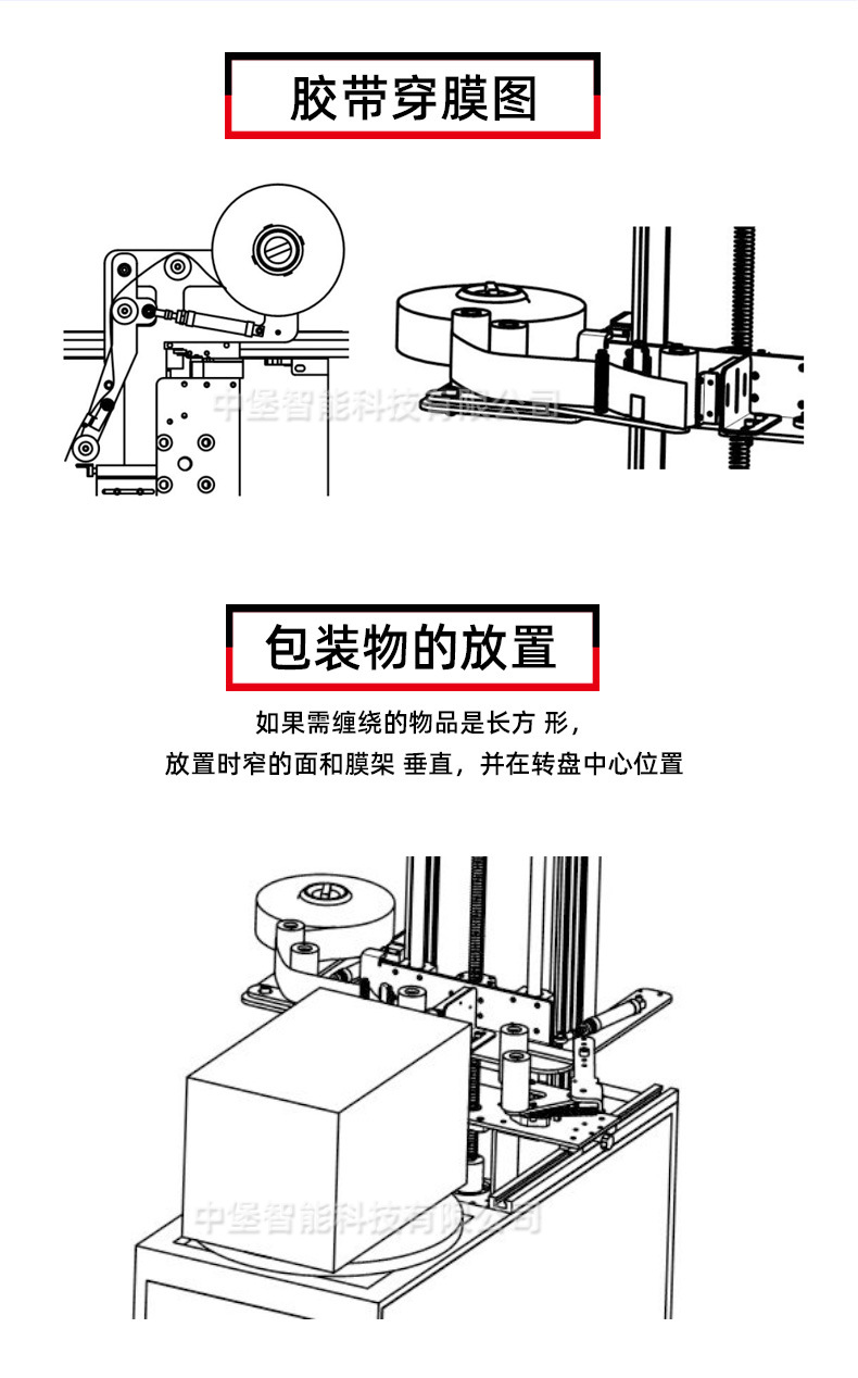 - 調整轉盤:對于有轉盤的纏繞機,先清理轉盤表面,將需要纏繞的貨物平穩放置在轉盤中心位置。如果貨物較小,可使用輔助夾具固定,防止在纏繞過程中移位;若貨物較大,要檢查其是否超出機器規定的包裝尺寸范圍,必要時調整轉盤高度或使用墊高塊來適配貨物。