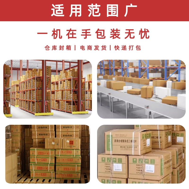 • 隨著電子商務的迅猛發展,電商企業每天都要處理大量的訂單。封箱打包一體機可以快速地對各種尺寸的商品包裝箱進行封箱和打包,適應不同類型商品的包裝需求,如服裝、日用品、小型電子產品等。而且,一體機的高效性能可以幫助電商企業在促銷活動等訂單高峰期快速完成包裝發貨,提高客戶滿意度。