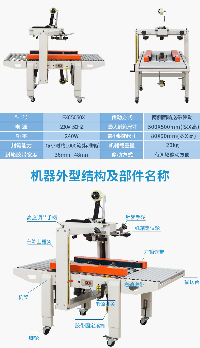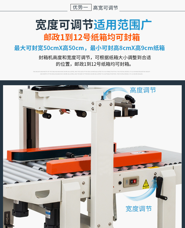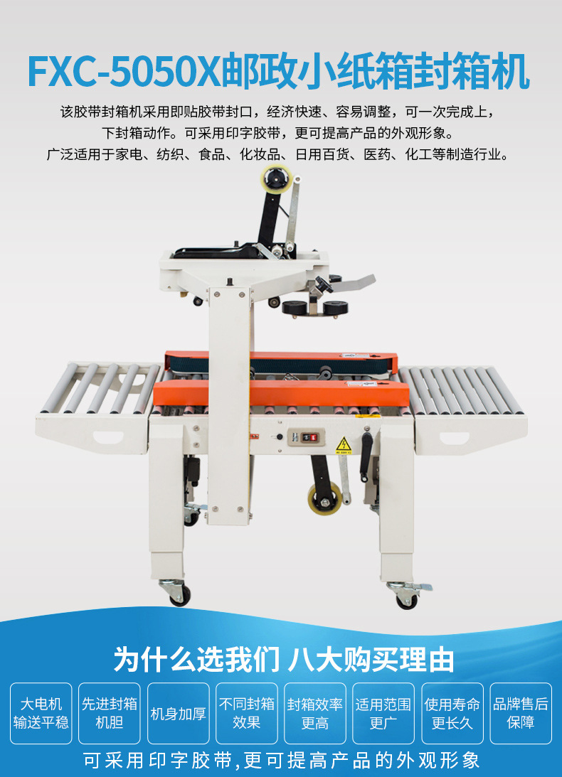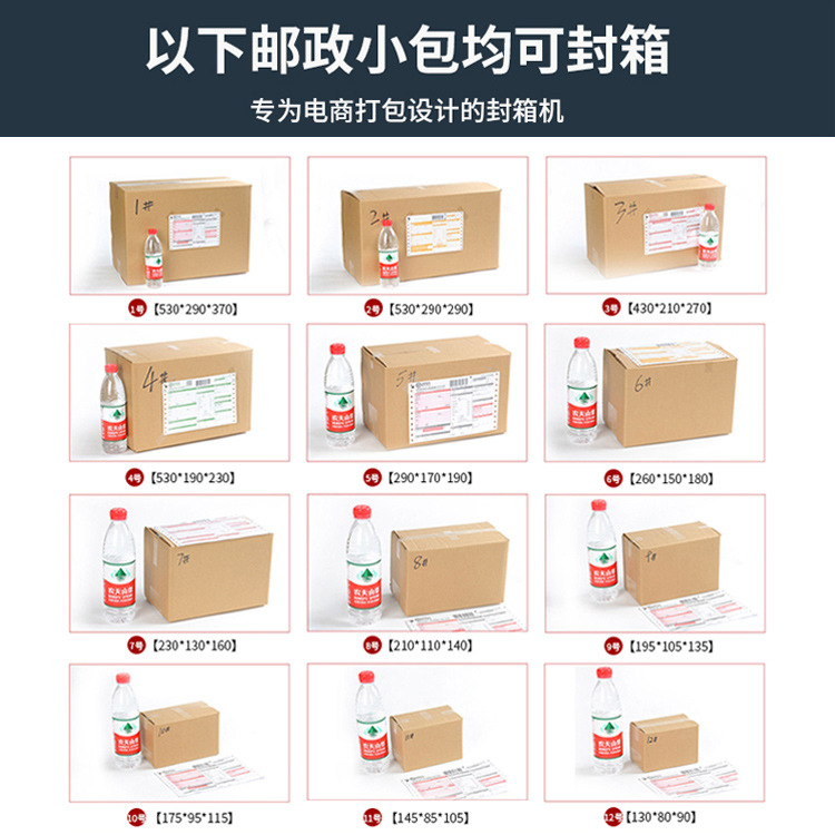 2. 持續穩定運行:設備運行穩定,只要原材料(紙箱、膠帶或熱熔膠等)供應充足,就能長時間連續工作,避免了人工因疲勞、休息等因素導致的封箱效率波動。例如在物流倉庫,從早到晚持續封箱作業,始終保持高效穩定的封箱速度,保障貨物的快速周轉