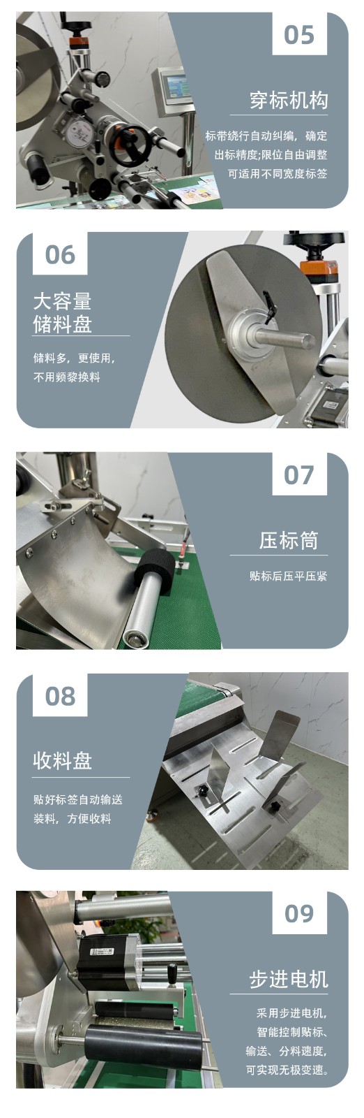 緊接著,分離后的標(biāo)簽或產(chǎn)品快速進(jìn)入貼標(biāo)環(huán)節(jié)。貼標(biāo)機(jī)構(gòu)采用先進(jìn)的傳感技術(shù)與高精度貼標(biāo)頭,當(dāng)產(chǎn)品通過輸送線到達(dá)指定貼標(biāo)位置時,傳感器瞬間捕捉到信號,并即刻將指令傳達(dá)至貼標(biāo)頭。貼標(biāo)頭以極快的響應(yīng)速度,將標(biāo)簽從卷狀材料上精準(zhǔn)剝離,隨后以恰到好處的壓力和速度,將標(biāo)簽平整、牢固地貼附在產(chǎn)品表面。整個貼標(biāo)過程一氣呵成,動作流暢且連貫,幾乎沒有絲毫停頓。