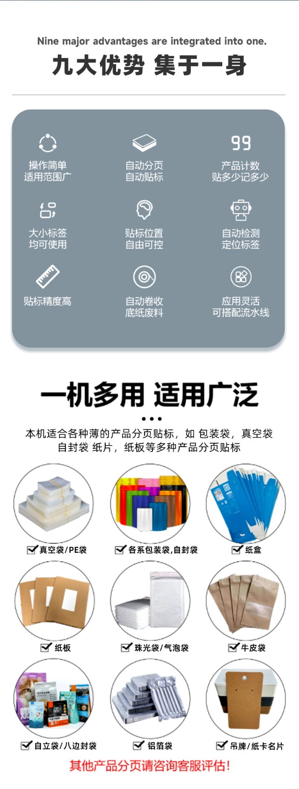 如此高效的連續(xù)、快速分頁和貼標(biāo)操作,為企業(yè)帶來了顯著的人力成本縮減。以往依靠大量人工進(jìn)行分頁和貼標(biāo)的工作模式,不僅耗時費(fèi)力,而且極易因人工疲勞等因素導(dǎo)致操作速度減緩以及貼標(biāo)誤差增加。如今,全自動分頁貼標(biāo)機(jī)投入使用后,原本需要數(shù)十名甚至上百名工人才能完成的工作量,現(xiàn)在僅需少數(shù)幾名技術(shù)人員進(jìn)行設(shè)備監(jiān)控與維護(hù)即可。這大大減少了人工操作所耗費(fèi)的時間,從原本需要數(shù)小時甚至數(shù)天才能完成的大規(guī)模貼標(biāo)任務(wù),縮短至短短幾十分鐘或數(shù)小時內(nèi)就能高效完成。