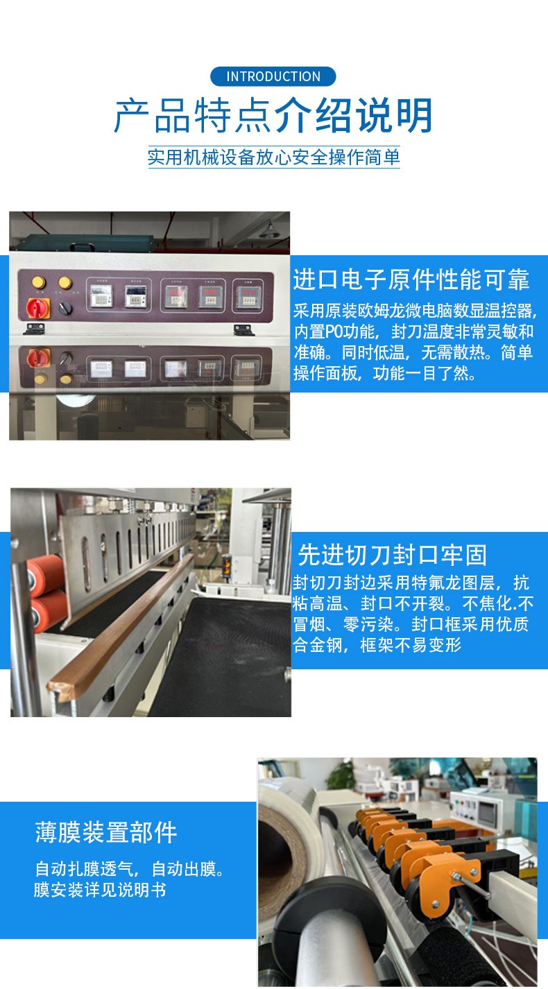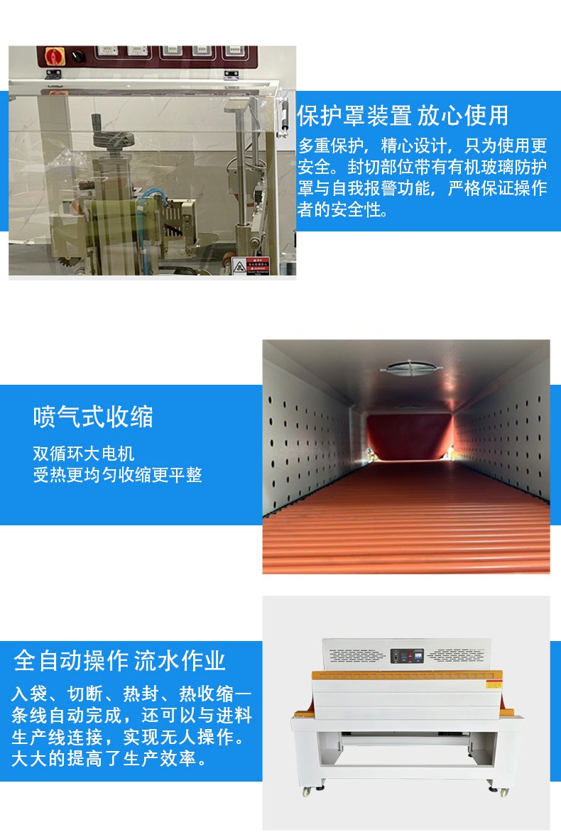 全自動邊封熱收縮機的控制系統是整個設備的 “大腦”,它負責協調和控制各個部件的運行,以實現高效、精準的包裝過程。以下是對其控制系統的詳細介紹: 硬件組成 PLC 控制器 核心運算與控制:PLC(可編程邏輯控制器)是控制系統的核心部件。它接收來自各個傳感器的信號,如產品到位傳感器、薄膜檢測傳感器等,根據預設的程序進行邏輯運算和處理,并向各個執行元件發送控制指令,如驅動電機、氣動元件等,以精確控制送料、套膜、封切和熱收縮等各個包裝工序的執行順序和時間。 穩定性與可靠性:具有高可靠性,能在惡劣的工業環境下穩定工作,抗干擾能力強,可確保設備長時間連續運行而不出現故障,保證包裝過程的穩定性和一致性。 觸摸屏 人機交互界面:觸摸屏作為人機交互的窗口,為操作人員提供了直觀、便捷的操作平臺。操作人員可以通過觸摸屏幕輕松設置各種包裝參數,如封切時間、收縮溫度、輸送速度等。同時,觸摸屏還能實時顯示設備的運行狀態,如當前工作模式、各部件的運行參數、故障報警信息等,方便操作人員隨時了解設備運行情況并及時進行調整和維護。 參數設置與存儲:支持多種參數的設置和存儲,可根據不同的產品包裝需求,預設多個包裝方案,操作人員只需在觸摸屏上選擇相應的方案,即可快速切換設備的工作參數,無需重新逐一設置,大大提高了工作效率。此外,觸摸屏還具備密碼保護功能,可防止非授權人員隨意修改參數,確保設備運行的安全性和穩定性。 軟件功能 參數設置與調整功能 精確控制:通過控制系統的軟件,能夠精確設置和調整封切時間、收縮溫度、輸送速度等關鍵參數。例如,封切時間可以精確到毫秒級,收縮溫度可在一定范圍內以較小的溫度梯度進行調整,輸送速度也能根據產品尺寸和包裝要求進行精確設定,從而保證不同產品都能獲得理想的包裝效果。 自動調節與優化:部分先進的控制系統還具備自動調節功能,能夠根據預設的包裝質量標準,自動對參數進行微調優化。例如,在熱收縮過程中,系統可根據熱收縮膜的收縮情況,自動調整加熱溫度和風機風速,以確保熱收縮膜均勻收縮,緊密貼合產品表面。 運行監控與故障診斷功能 實時監控:控制系統實時監控設備各個部件的運行狀態,包括電機的轉速、加熱元件的溫度、氣動元件的壓力等。通過傳感器將這些實時數據反饋給 PLC 控制器,再由觸摸屏以圖形化界面的形式展示給操作人員,使操作人員能夠直觀地了解設備的運行情況。 故障診斷與報警:一旦檢測到設備出現異常情況,如溫度過高、電機過載、薄膜供應不足等,控制系統會立即進行故障診斷,并在觸摸屏上顯示詳細的故障信息和報警提示。同時,系統還會自動記錄故障發生的時間、位置和相關參數,以便維修人員快速定位和排除故障。有些控制系統還具備遠程監控和報警功能,可通過網絡將故障信息發送給相關人員的手機或電腦,實現及時響應和處理。 生產數據統計與管理功能 數據統計:控制系統能夠自動統計生產過程中的各種數據,如包裝數量、生產速度、設備運行時間、故障停機時間等。這些數據對于企業的生產管理和質量控制具有重要意義,可幫助企業分析生產效率、評估設備性能、制定生產計劃和進行成本核算。 數據存儲與查詢:生產數據可存儲在控制系統的內存或外部存儲設備中,方便操作人員隨時查詢和調用。同時,數據還可通過網絡接口導出到計算機或企業的生產管理系統中,以便進行進一步的分析和處理,為企業的決策提供數據支持。 通信與聯網功能 內部通信:控制系統通過內部通信總線實現各個硬件模塊之間的高速數據傳輸和通信,確保 PLC 控制器、觸摸屏、傳感器和執行元件等之間的信息交互準確、及時,從而實現設備各部件的協同工作。 外部聯網:一些高端的全自動邊封熱收縮機控制系統支持外部聯網功能,可通過以太網、WiFi 等方式與企業的生產管理系統或其他設備進行聯網通信。這樣,企業可以實現對多臺設備的集中監控和管理,優化生產流程,提高生產效率和管理水平。例如,在一個大規模的包裝生產線上,通過聯網功能可以將多臺熱收縮機與前端的灌裝設備、后端的貼標設備等進行整合,實現整個包裝生產線的自動化和智能化控制