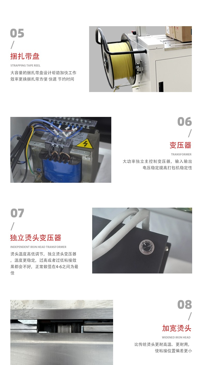 - 全自動打包機:工作效率高,由于無需人工頻繁操作,連續打包能力強,每分鐘可完成多個物品的打包,適用于大規模、高頻率的打包作業,如大型物流中心、生產車間等。