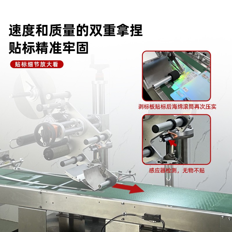 - 優(yōu)化貼標(biāo)頭結(jié)構(gòu):檢查貼標(biāo)頭的各個(gè)部件,如標(biāo)簽剝離板、壓輥等,確保它們的工作狀態(tài)良好。如果標(biāo)簽剝離板的角度不合適,會(huì)影響標(biāo)簽的剝離速度,進(jìn)而影響貼標(biāo)速度。適當(dāng)調(diào)整剝離板的角度,使標(biāo)簽?zāi)軌蚋槙车貜牡准埳蟿冸x。同時(shí),檢查壓輥的壓力是否均勻,壓力過(guò)大或過(guò)小都會(huì)影響貼標(biāo)速度和質(zhì)量,可通過(guò)調(diào)整壓輥的彈簧壓力來(lái)優(yōu)化貼標(biāo)效果和速度。