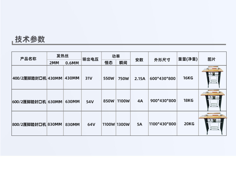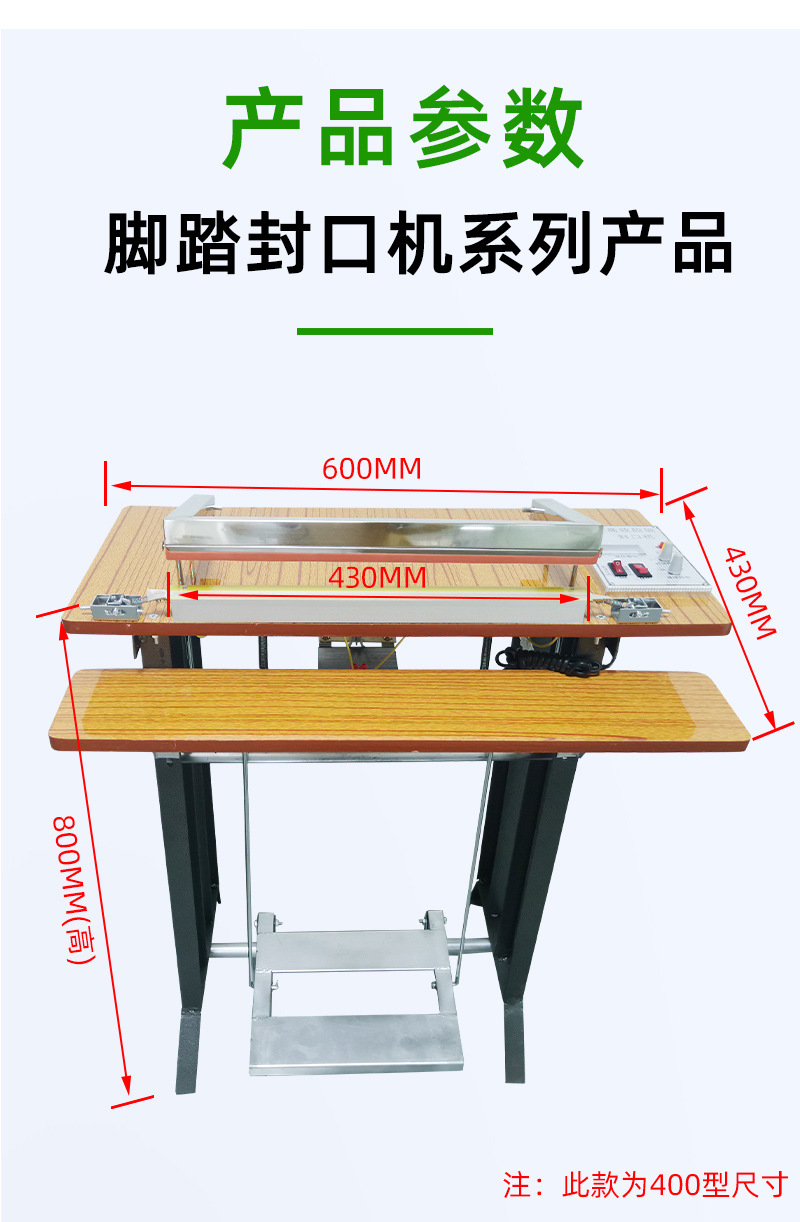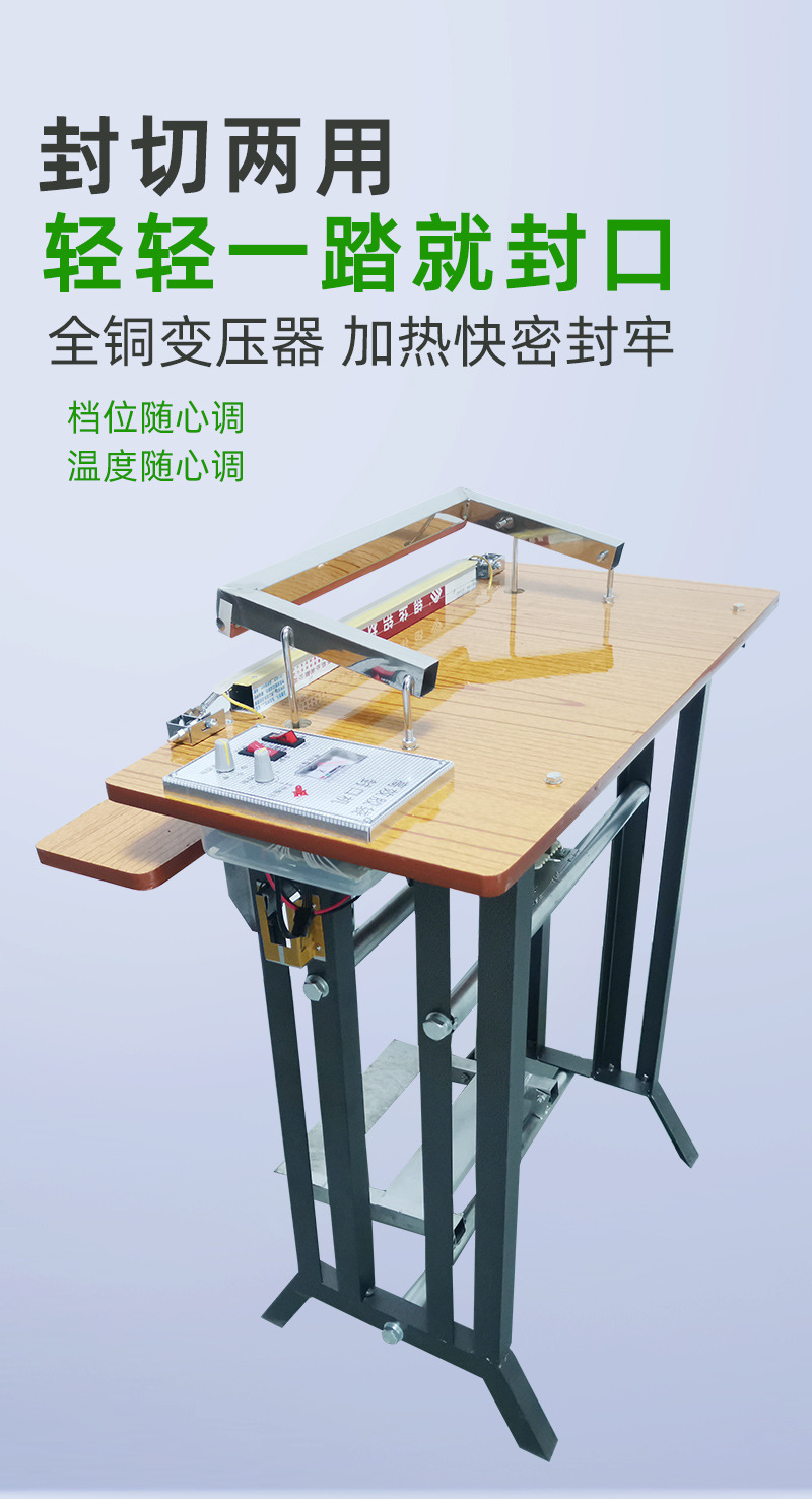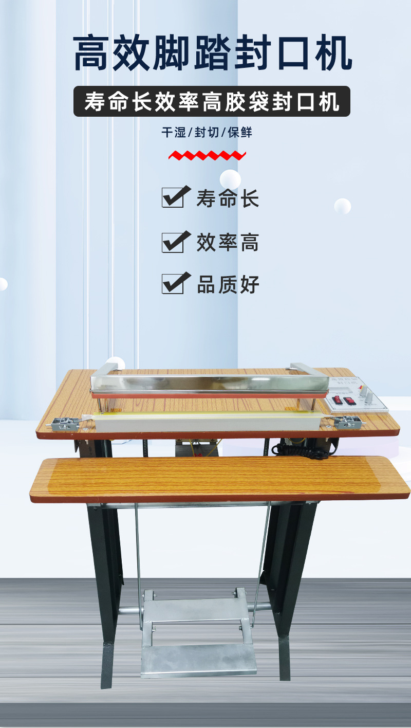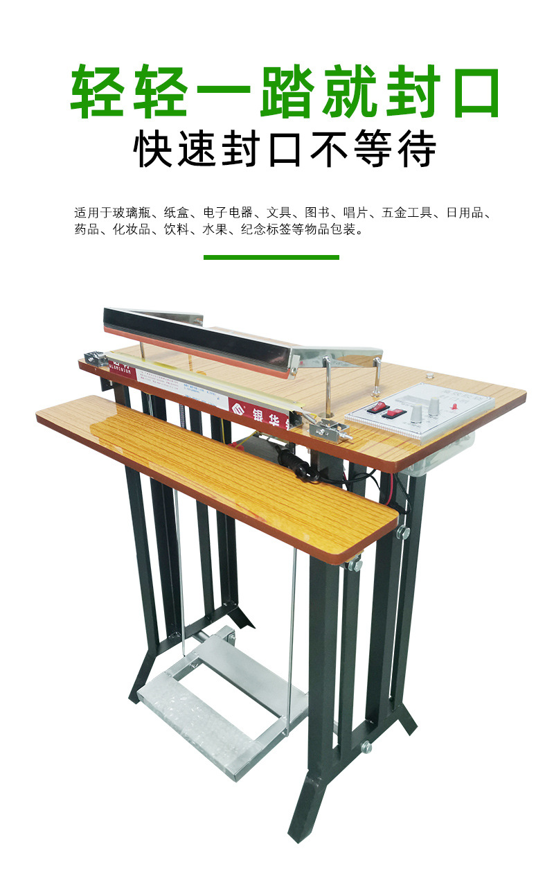 - 操作簡(jiǎn)便:只需人工放好袋子或容器,用腳踩下腳踏開(kāi)關(guān),即可自動(dòng)完成封口動(dòng)作,降低了操作人員的勞動(dòng)強(qiáng)度。