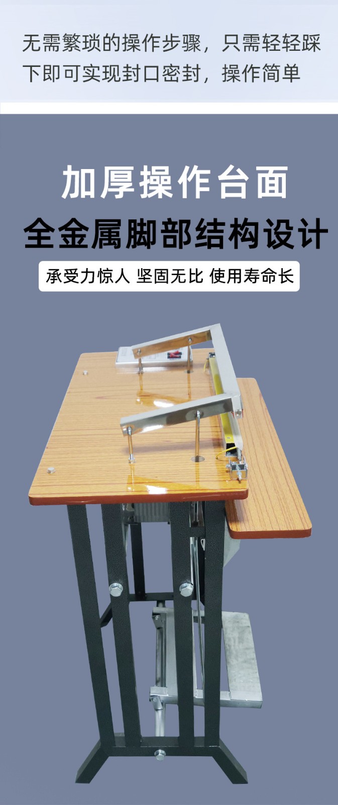 腳踏封口機(jī)是一種通過(guò)腳踏板控制封口動(dòng)作的包裝設(shè)備,主要用于各種塑料袋、鋁箔袋、復(fù)合袋等的封口作業(yè)