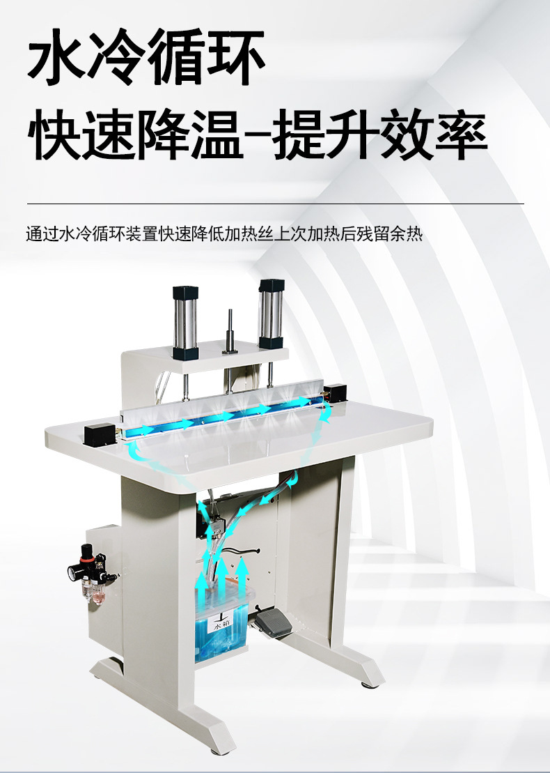 • 水冷系統:通過板式換熱器或銅管循環冷卻水(水溫 15~25℃,流量 3~5L/min),在封口后 0.5~1 秒內將溫度降至 50℃以下,使分子鏈快速固化。