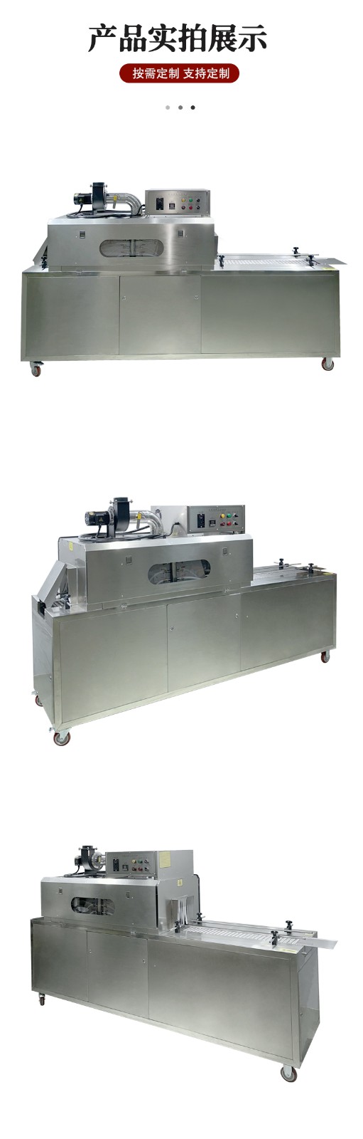3. 冷卻定型輸出:完成收縮的產品隨輸送帶離開收縮通道,通道出口的通風結構排出殘留蒸汽,產品在外界常溫環境下快速冷卻,薄膜形態固定,最終形成成型包裝,由輸送帶送至成品區。